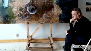Ateljeessani on useita musiikkiaiheisia töitä, jotka ovat syntyneet vuosien varrella. Eräänä päivänä kuljin Musiikkitalossa ja huomasin, että täällä on mahdollisuus laittaa kuvataidetta esille. ”No, tämä sopii minulle”, ajattelin, “täällä haluan pitää näyttelyn.”