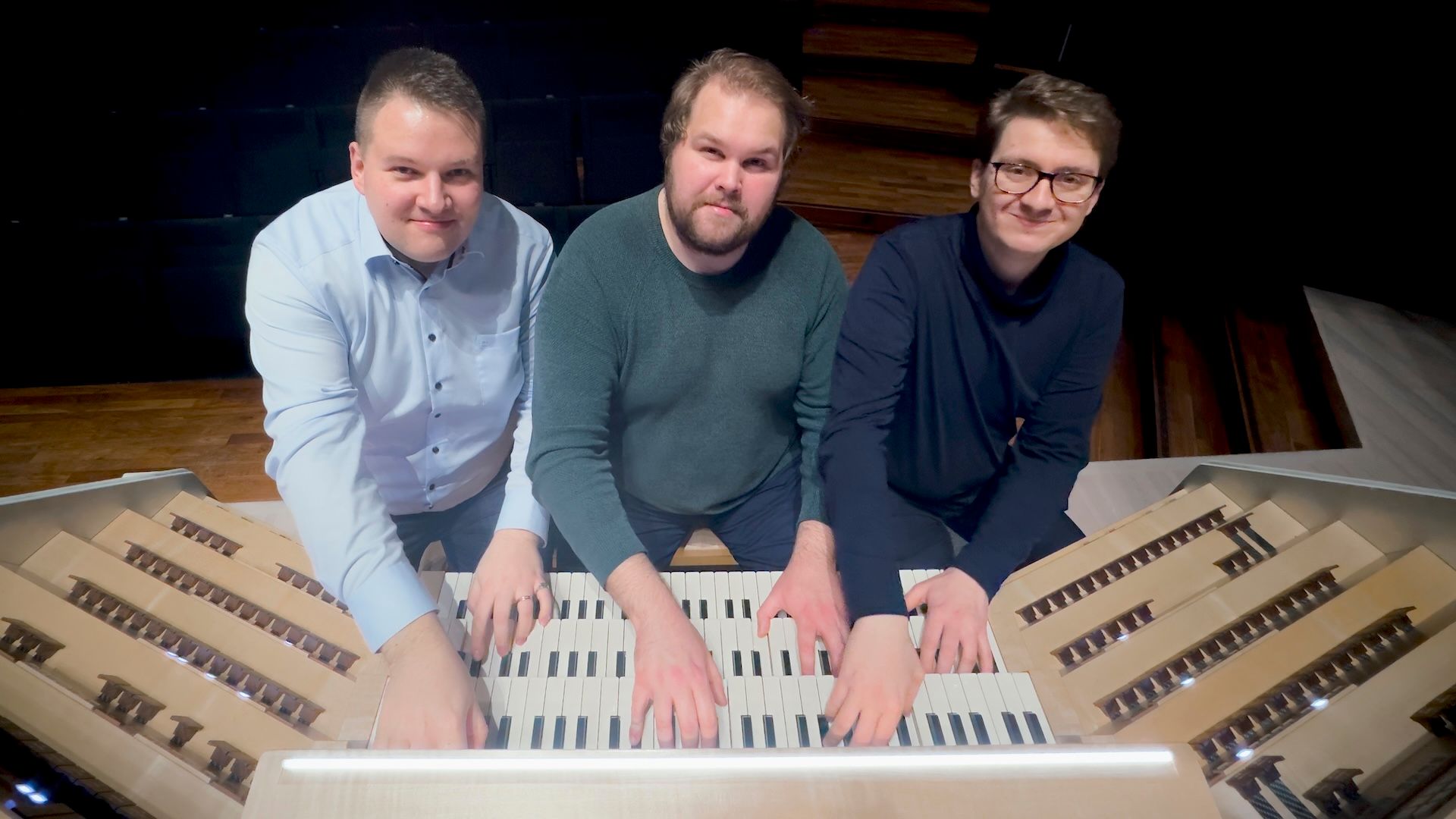 Mihin kolme urkurikaverusta saattaisivat päätyä viettämään yhteissynttäreitä? No tietenkin soittamaan Musiikkitalon uusia urkuja!
